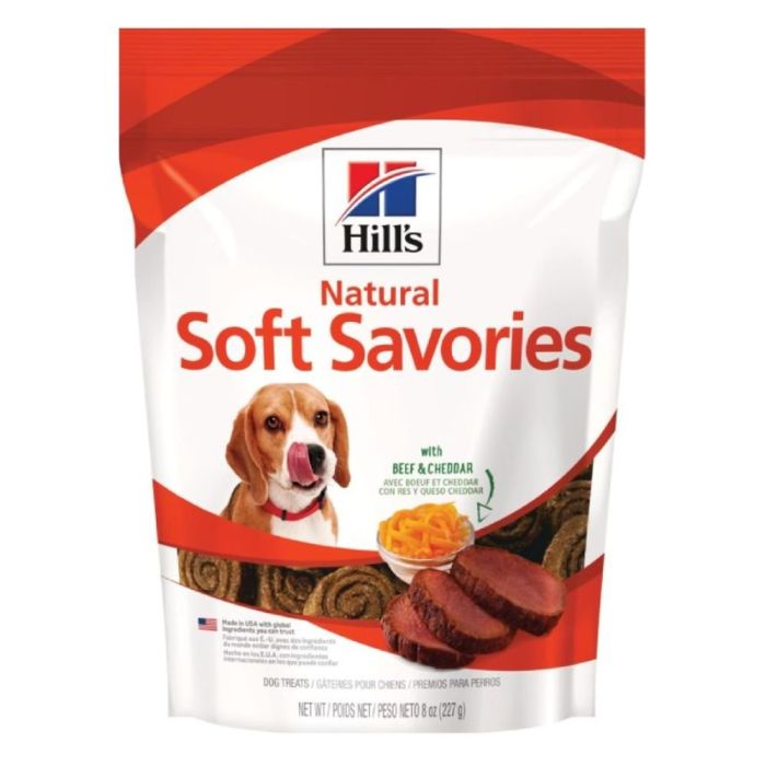 Recuerda administrar estos bocadillos con moderación como parte de una dieta equilibrada. Tu perro merece lo mejor, y con Hill's® Natural Soft Savories, le estás brindando un premio delicioso y nutritivo que seguramente lo hará feliz.